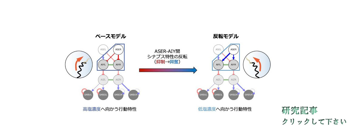 - 2025年03月10日線虫が塩味の好みを逆転するしくみを解明―神経回路は餌と共に育った環境塩濃度を記憶し、その方向へ線虫をナビゲートする―
